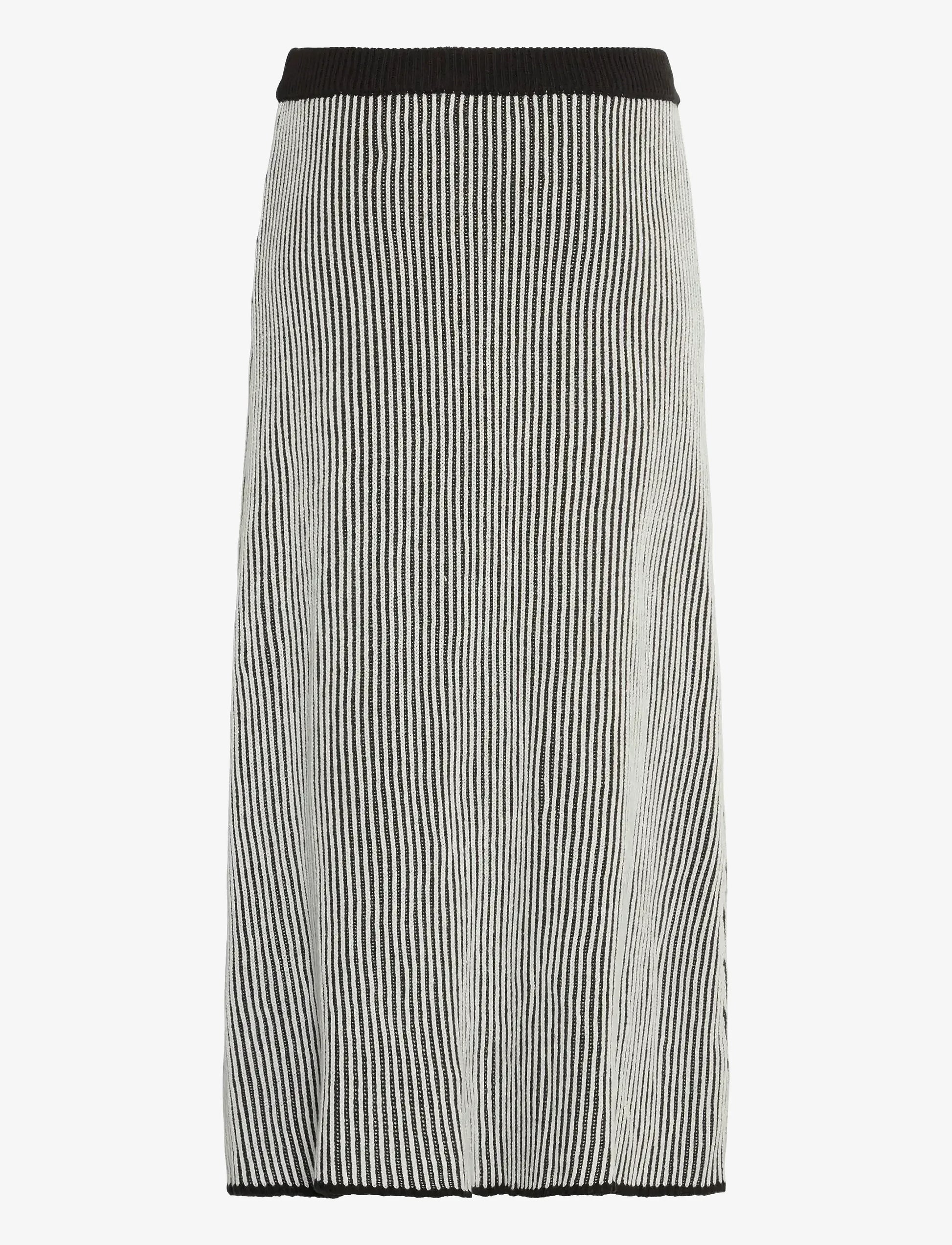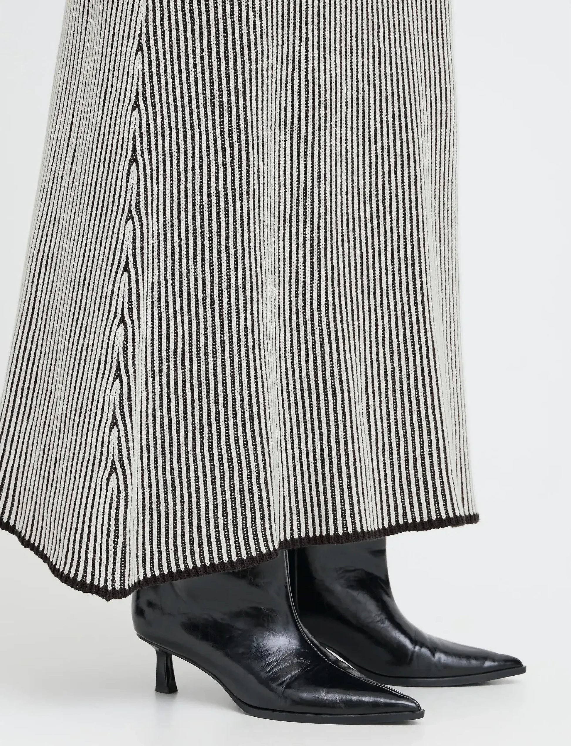 A timeless addition to any wardrobe, this knitted maxi skirt offers a flattering silhouette. The vertical stripes create a visually lengthening effect, while the soft knit ensures all-day comfort.
