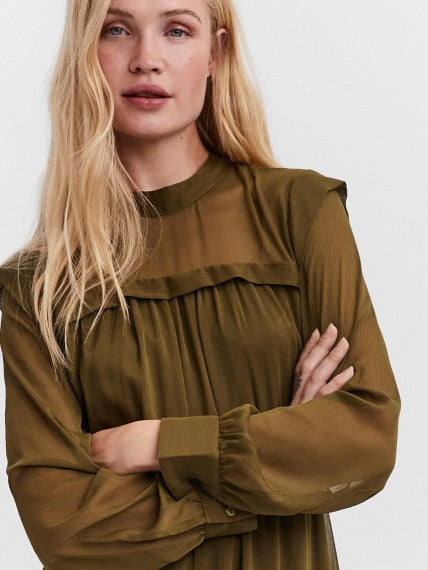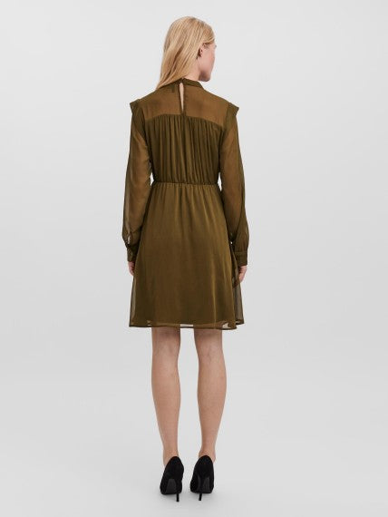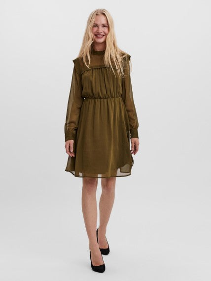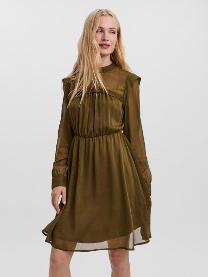- Mini dress- Sleeve cuffs with button- Transparent sleeves and chest- Elastic cut line at the waist- With recycled polyester- Regular Fit- Front length: 96 cm in size S- The model is 175 cm tall and wears a size SM in dress with buttoned cuffs, see-through details on the sleeves and chest as well as an elastic cut line at the waist. Combine this stunning dress with high heel pumps for a stylish everyday outfit. MADE WITH RECYCLED POLYESTER This product contains recycled polyester. Recycled polyester conserves natural resources and reduces waste.
