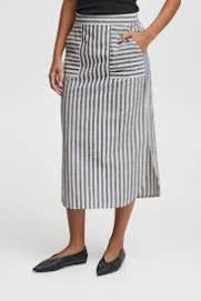natural stipe midi length skirt - featuring 2 side splits and pockets at the front with an elasticated waist.