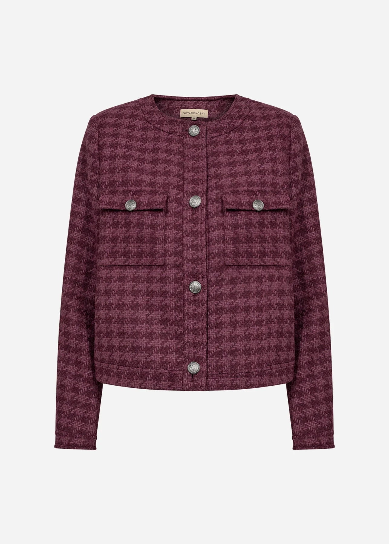 IRKA is a textured jacket in a houndstooth pattern composed of 80% Polyester, 10% Wool, 5% Viscose, 5% Polyamide. It features a front button closure, two chest pockets with button flaps, and a straight hem. This jacket pairs well with both casual attire and workwear for a sophisticated look80% Polyester, 10% Wool, 5% Viscose, 5% Polyamide