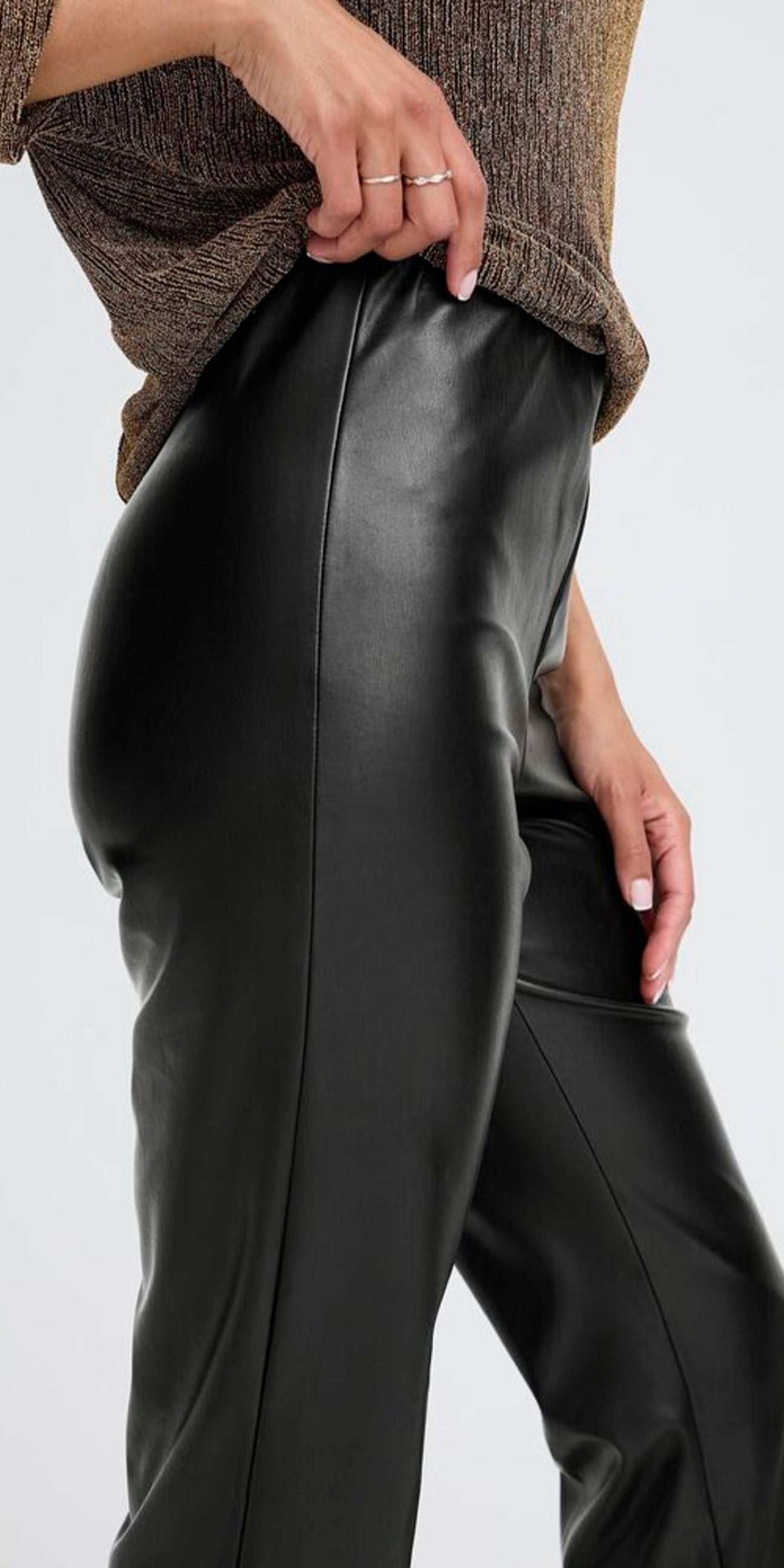 Stylish leather look pull on stretch trousers by b young, in a straight leg cut. Very comfortable and figure flattering, perfect for those winter days or nights out.