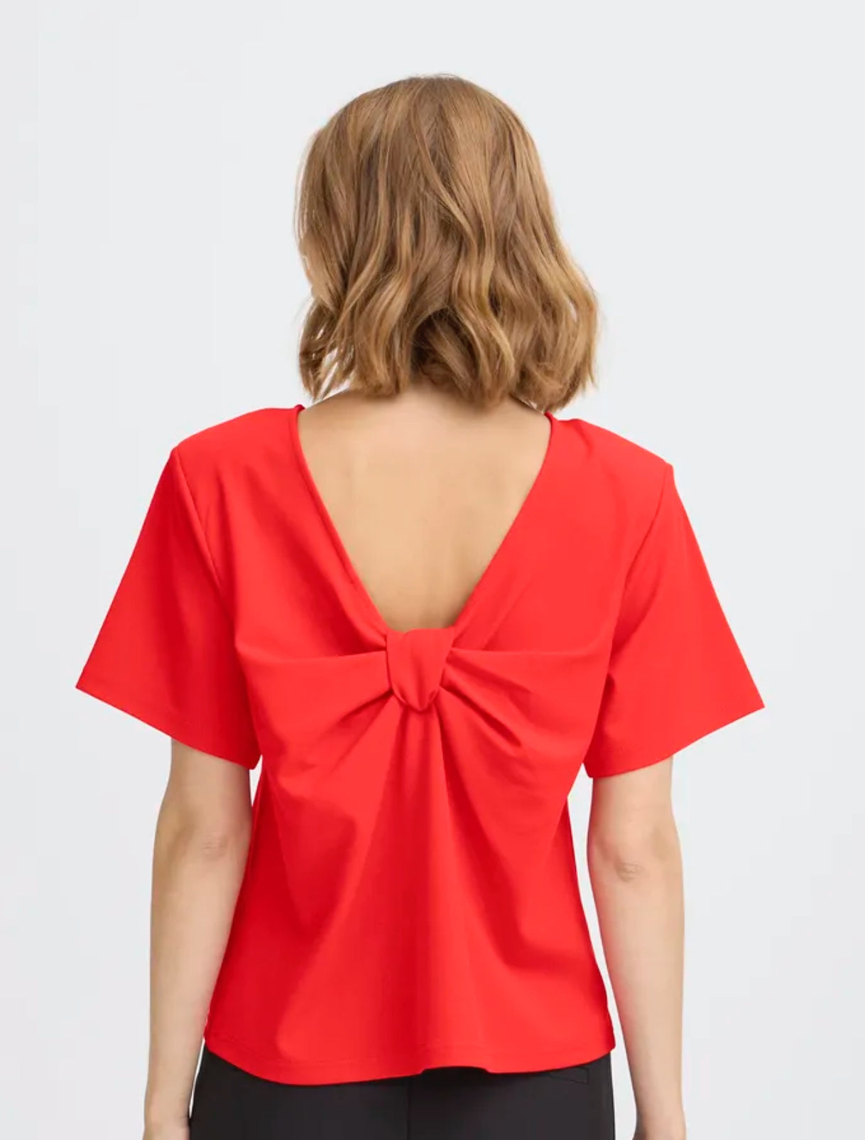 The ICHI MATINE SS Bow Top in Racing Red offers a refined blend of style and comfort. Crafted for a flattering fit, this short-sleeve top features a distinctive bow detail that adds a touch of sophistication to your wardrobe. Its vibrant red color enhances your presence, making it ideal for both casual and smart-casual occasions. Designed with quality materials, it ensures durability and ease of wear throughout the day. Perfect for those seeking a standout piece that combines expert tailoring with elegant simplicity.