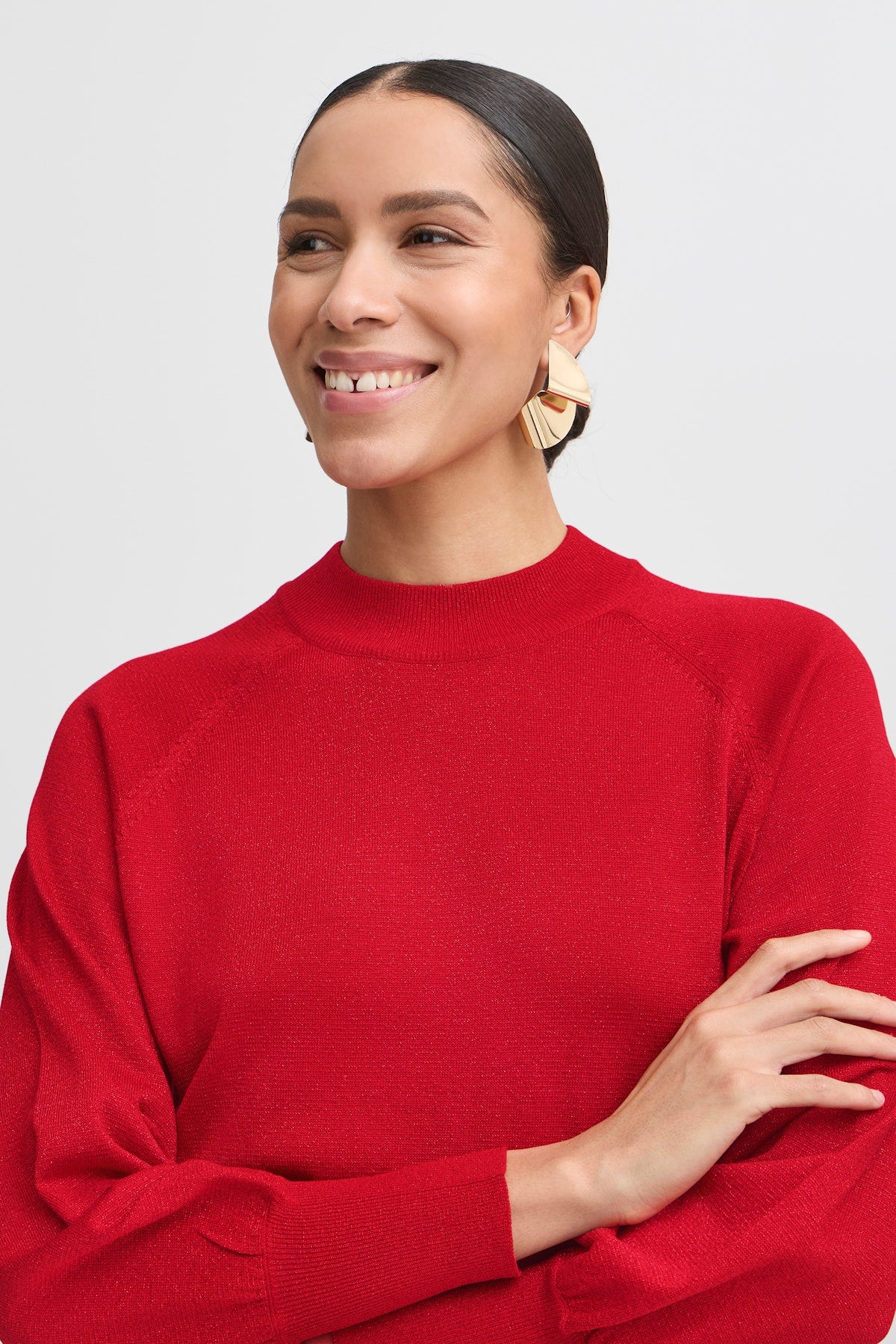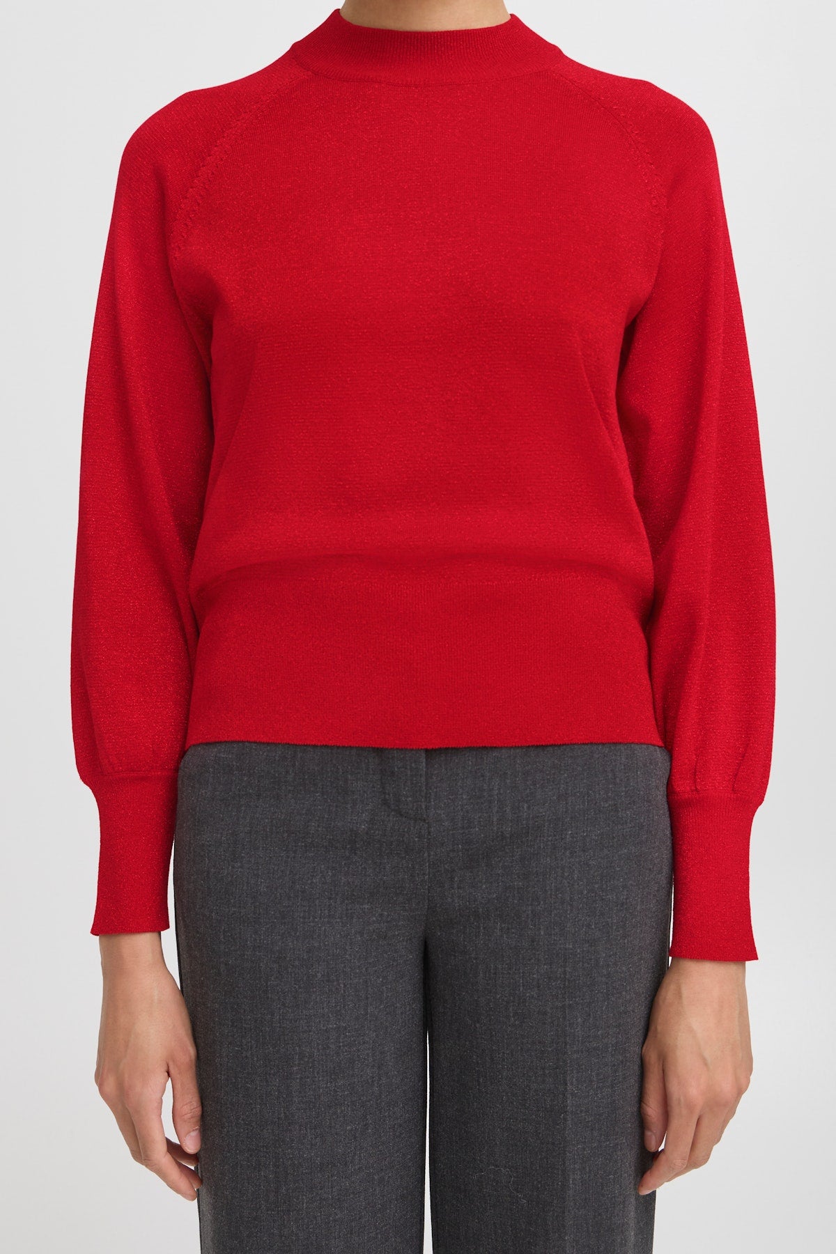 This women's sweater features a regular fit, shimmering finish, crew neckline, and long raglan sleeves. Soft knit material delivers comfort and versatility for both office and evening wear.