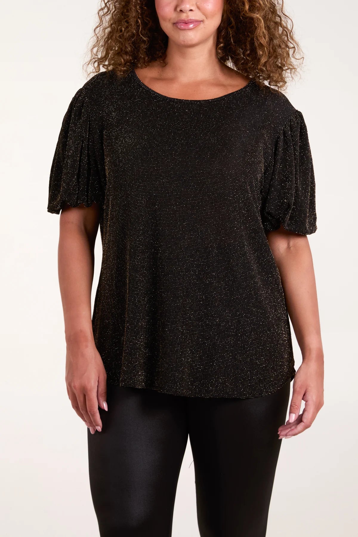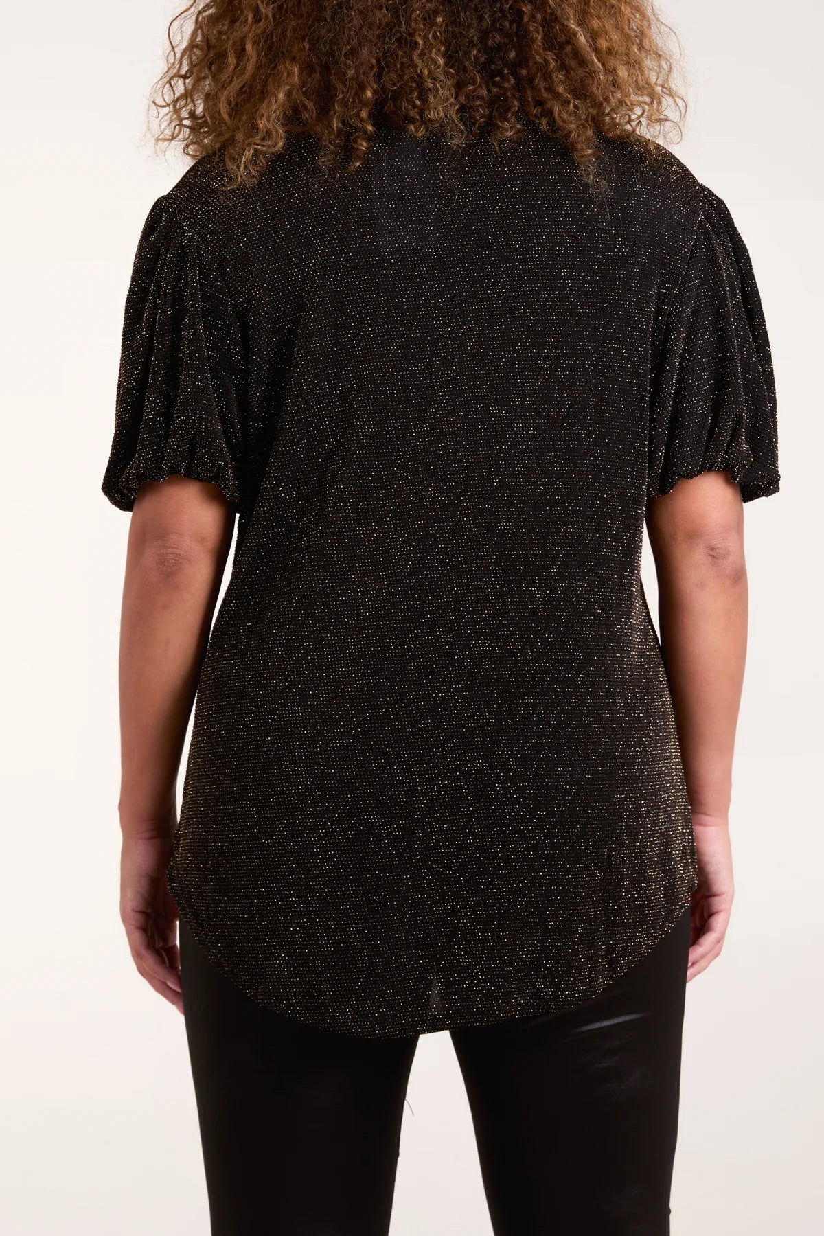 This boxy-style top features elasticated balloon sleeves for a refined silhouette and elevated comfort. Woven with silver lurex threads throughout, it delivers an elegant shimmer that effortlessly enhances your look. Ideal for adding a touch of metallic sophistication to your wardrobe, this piece balances style and wearability with expert design details.